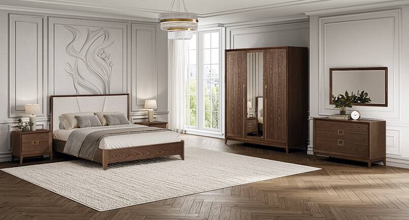 Новинка 2025 года коллекция мебели для спальни и гостиной Модена. Мебель выполнена в стиле современная классика с применением натуральных материалов массива и шпона ясеня.