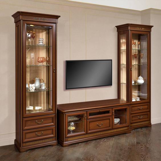 Тумба ТВ со стеклянными дверками Joconda орех купить в Тюмени