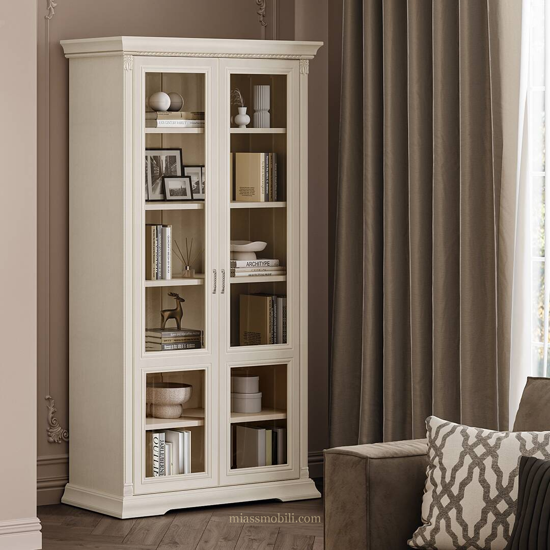 Шкаф для книг 2-х дв. стекло Lorenzo вуаль Книжные шкафы купить в Тюмени