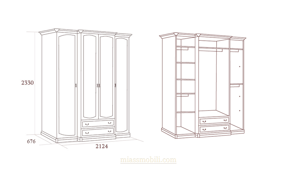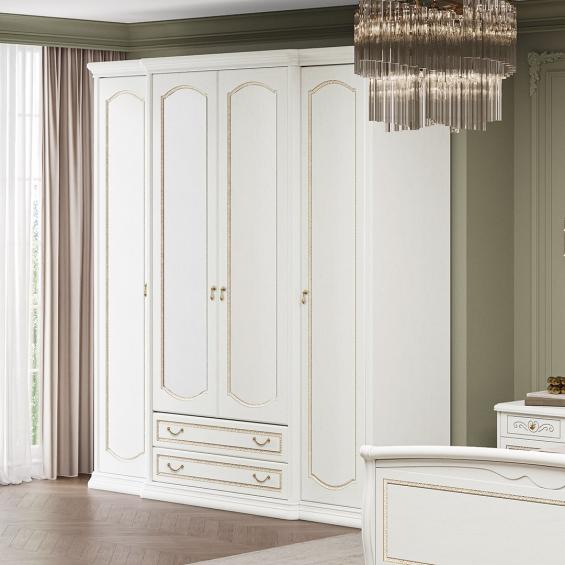 Шкаф 4-х дв. Luigi цвет белый для платья и белья без зеркал с ящиками Luigi белая купить в Тюмени