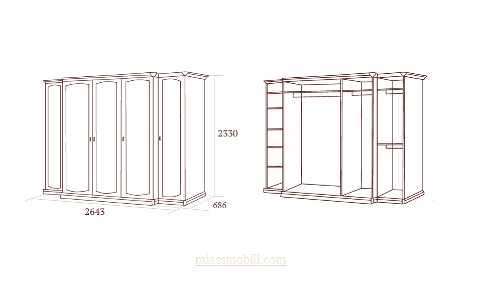 Шкаф 5-ти дв. Luigi цвет белый для платья и белья без зеркал Luigi белая купить в Тюмени