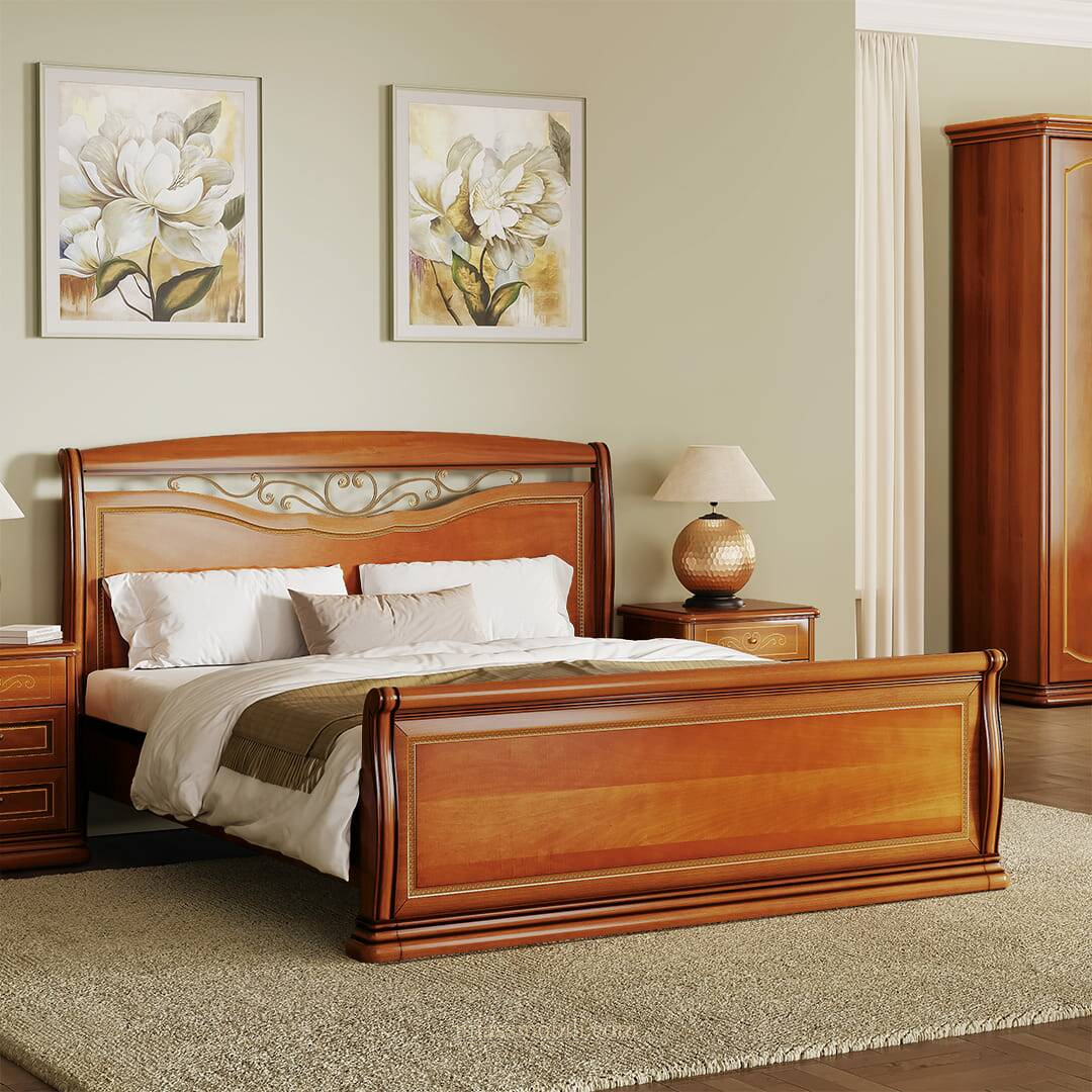 Двуспальная кровать (1600х2000) с кованым элементом и прямой ножной спинкой Luigi орех купить в Тюмени
