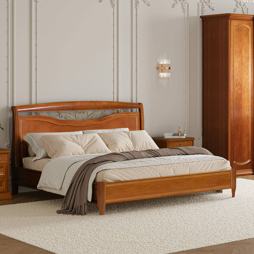 Кровать двойная Luigi цвет орех с кованым элементом без ножной спинки Кровати купить в Тюмени