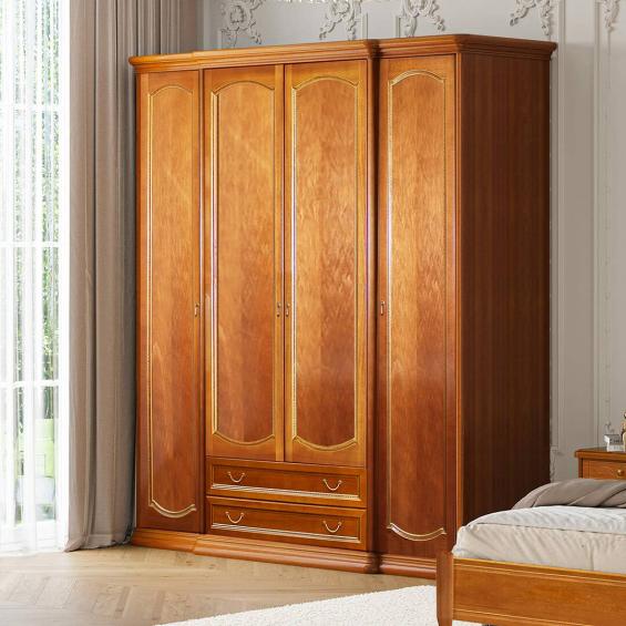 Шкаф 4-х дв. для платья и белья с ящиками без зеркал Luigi орех купить в Тюмени