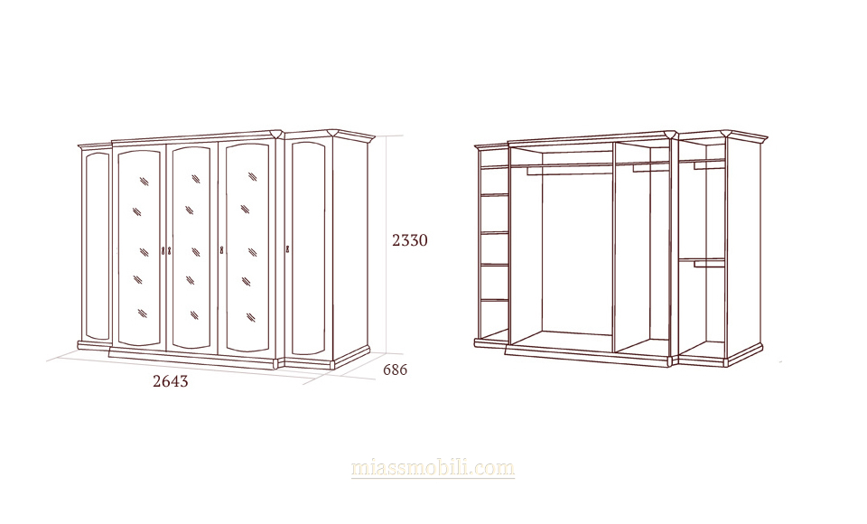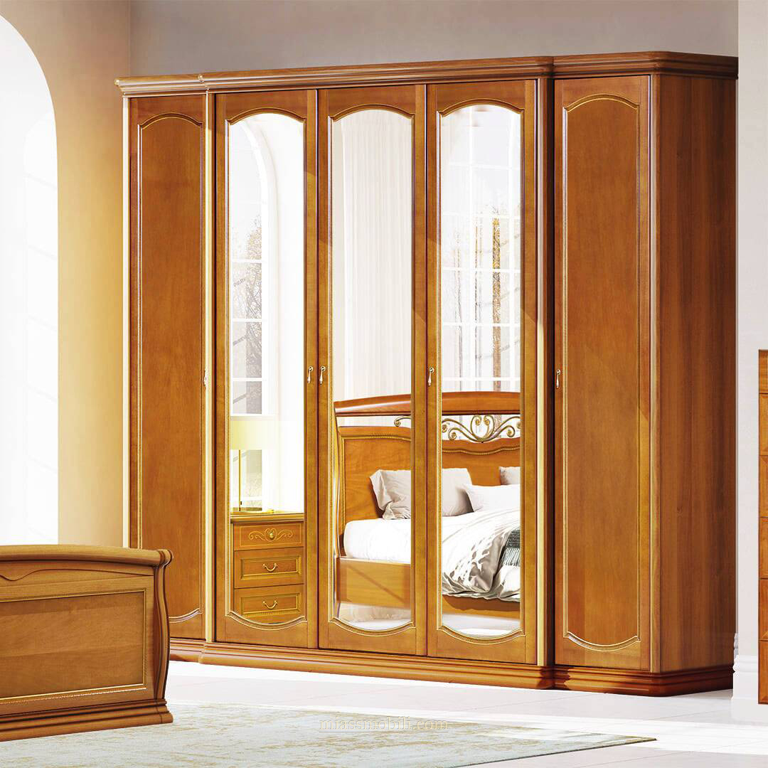 Шкаф 5-ти дв. для платья и белья с зеркалами Luigi орех купить в Тюмени