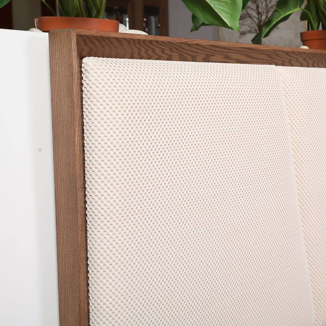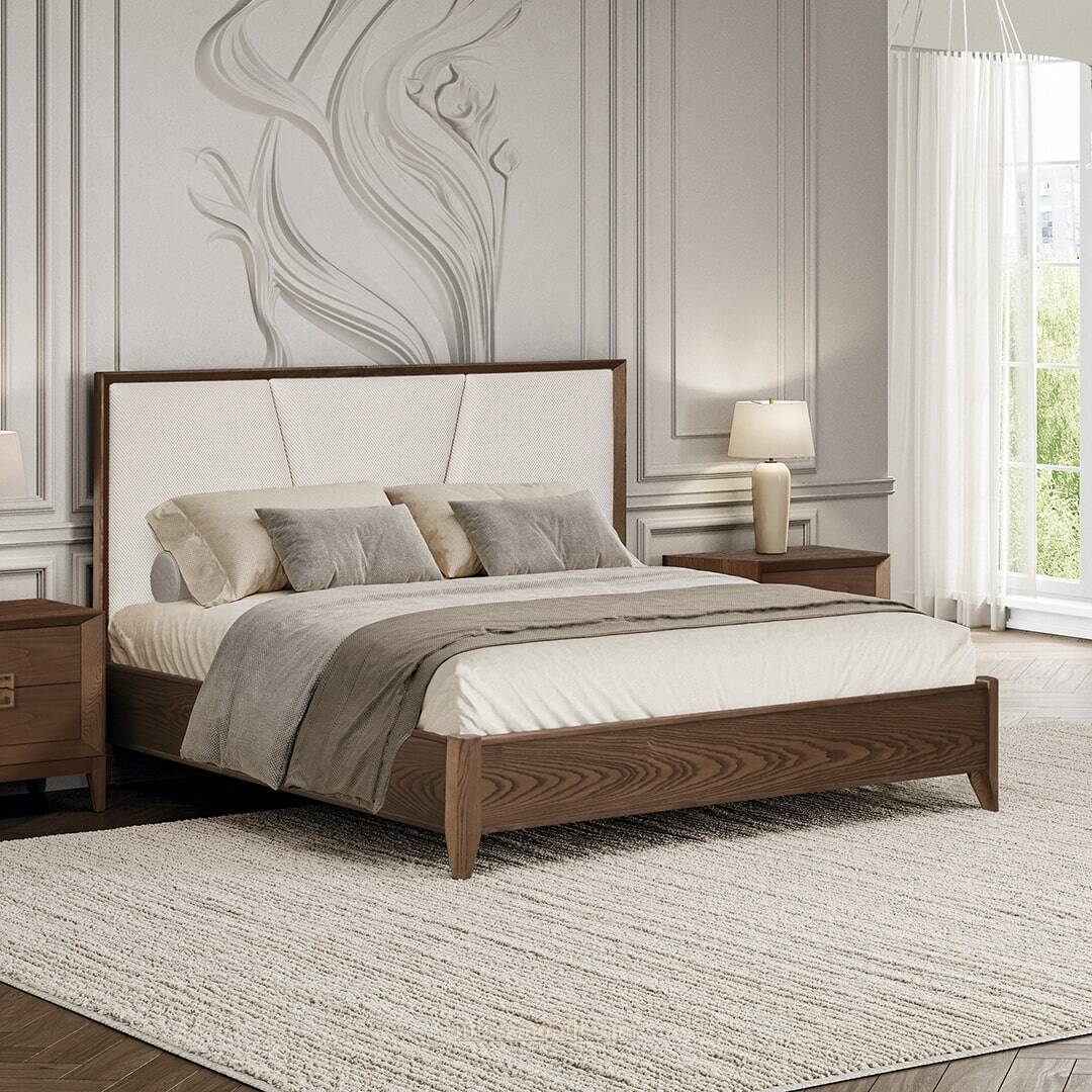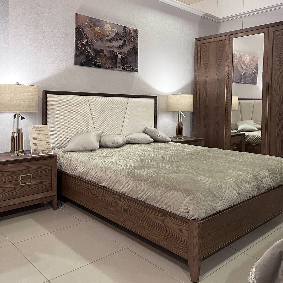 Кровать выполнена в стиле современная классика, с применением натуральных материалов массива и шпона ясеня.