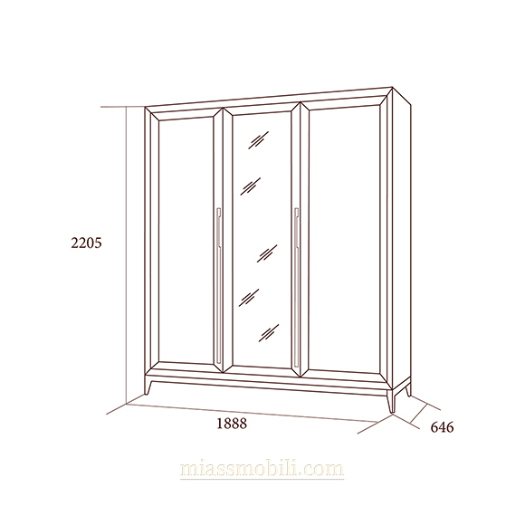 Шкаф 3-х дв .для платья и белья Modena дуб сатин с зеркалом дуб Сатин Modena дуб Сатин купить в Тюмени