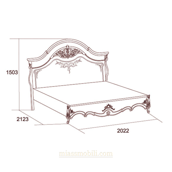 В отделке двуспальной кровати используются декоративные элементы с позолотой. Головная и ножная спинки украшены художественная ручной росписью.