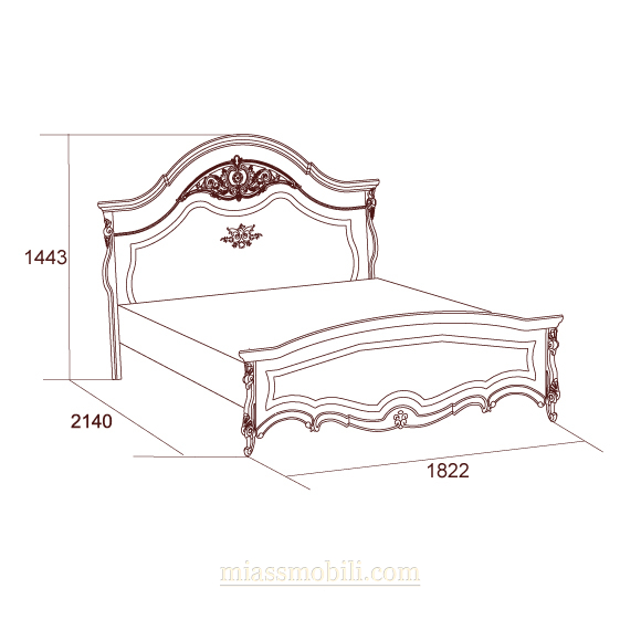 В отделке двуспальной кровати используются декоративные элементы с позолотой. Головная и ножная спинки украшены художественная ручной росписью. Габаритный размер указан по максимально выступающим частям изделия.