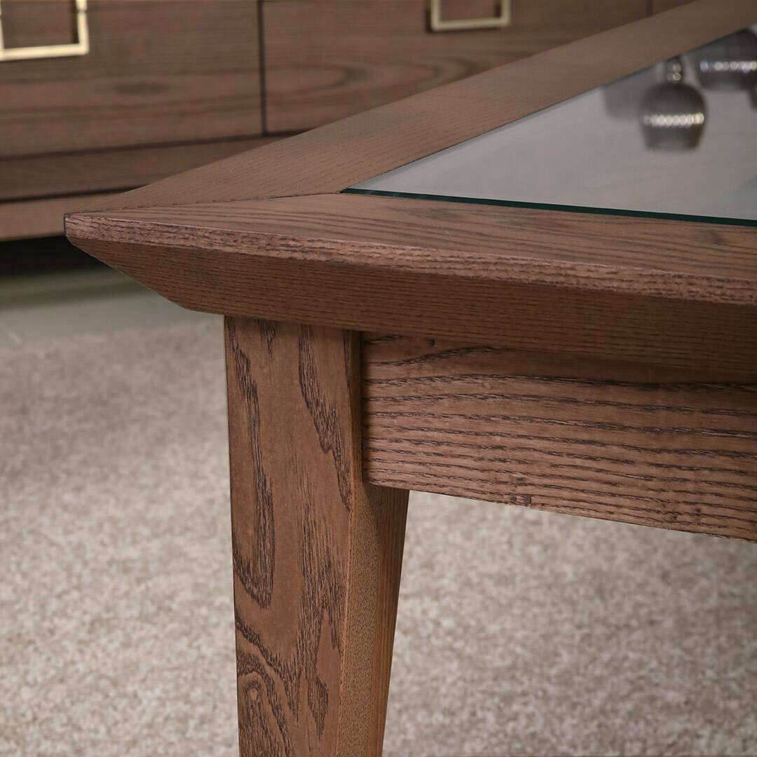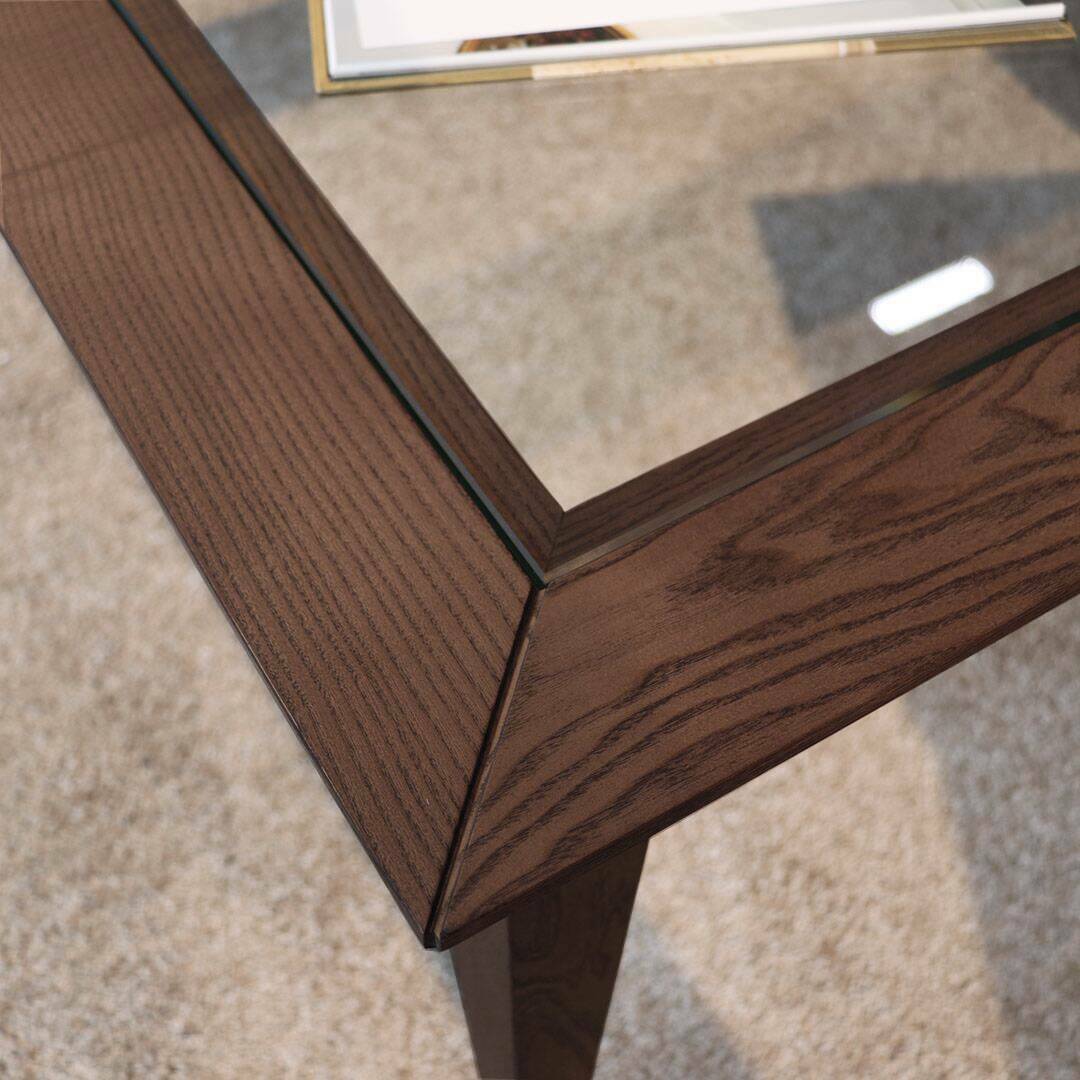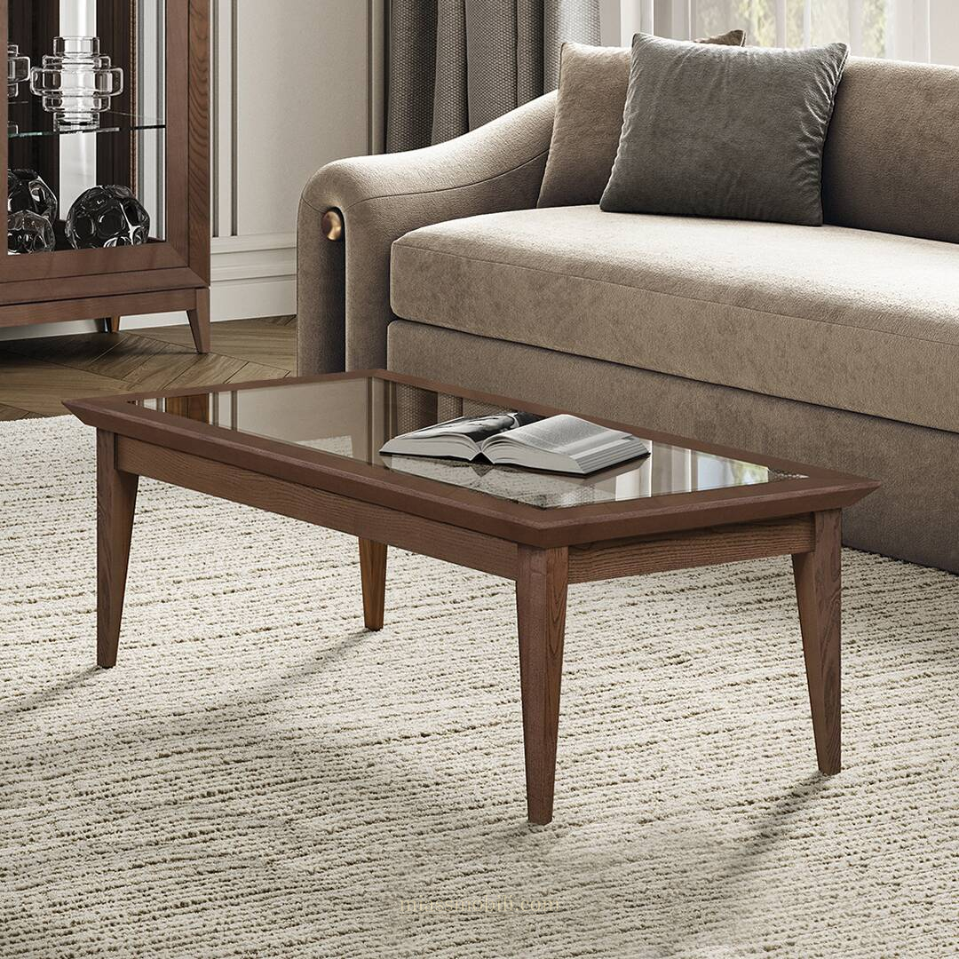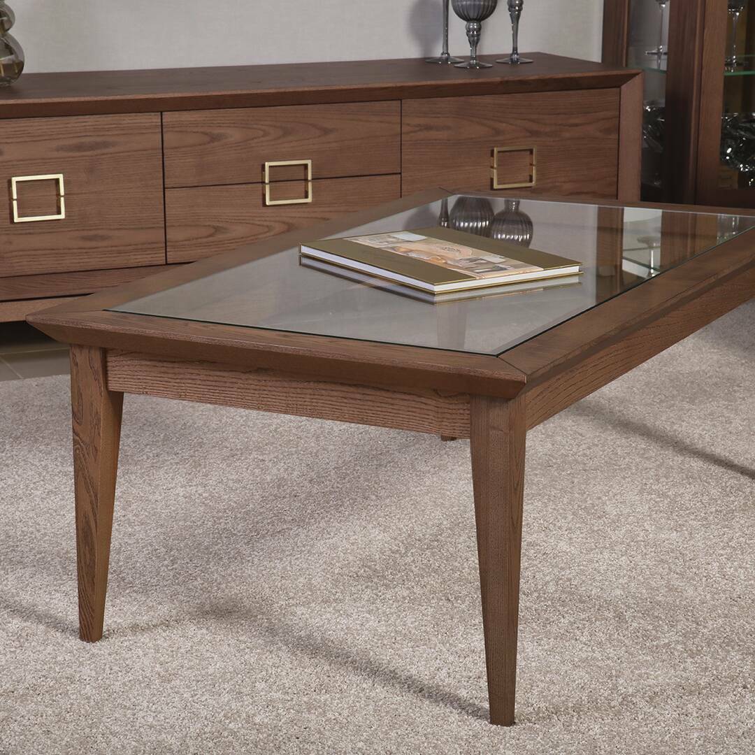 Стол журнальный из набора мебели Модена орех Mokka выполнен в стиле современная классика, с применением натуральных материалов массива и шпона ясеня.