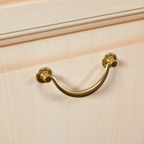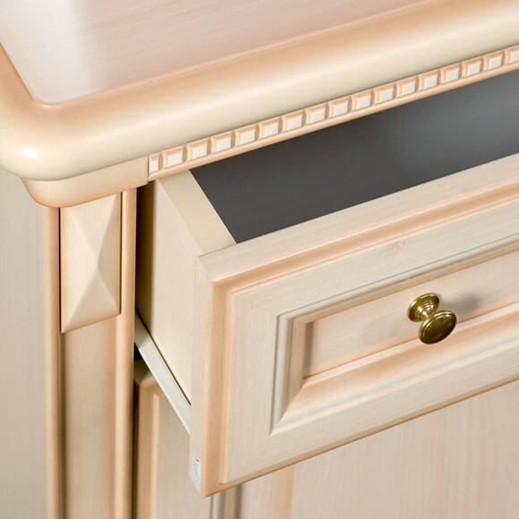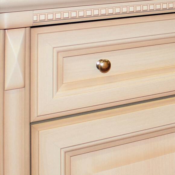 Фасад тумбы декорирован накладными декоративными элементами с отделкой патиной.